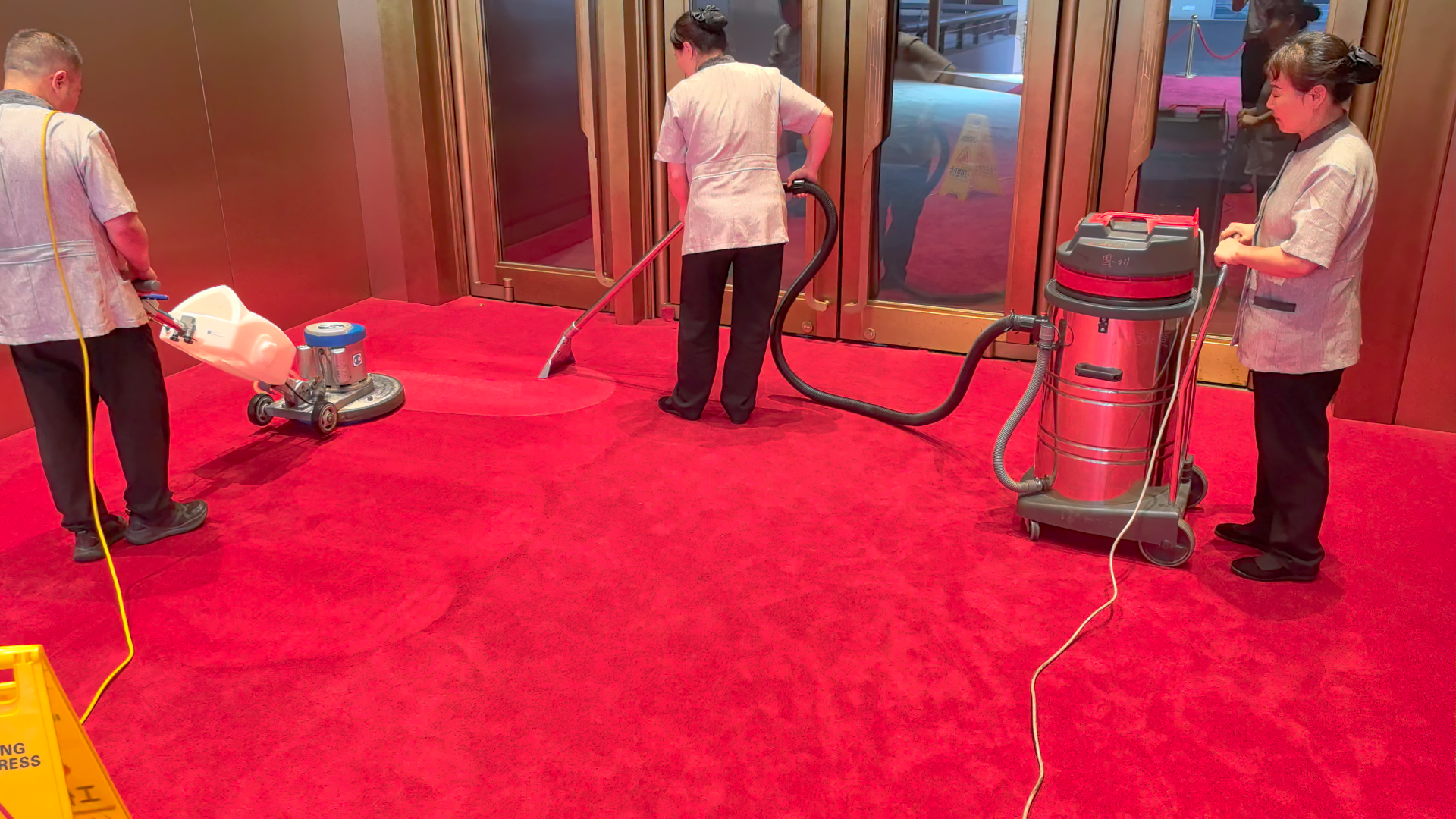 商务楼地毯上难免会有咖啡、茶水、墨水等污渍,处理不当就会留下永久痕迹。蒲公英保洁要求员工在处理局部污渍时严格遵守“三不原则”。