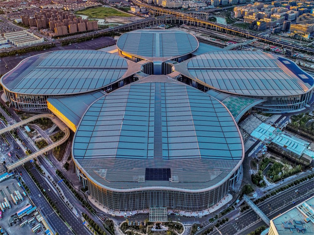 国家会展中心(上海),英文名“National Exhibition and Convention Center(Shanghai)”,简称“NECC(Shanghai)”,位于上海市青浦区崧泽大道333号,总建筑面积超150万平方米。场馆以“四叶草”为造型,由综合体、会展场馆、商业广场、办公楼宇、会议中心和洲际酒店组成,2011年12月26日动工兴建,2014年9月28日竣工,2016年12月1日全面运营。会展区域包含单层无柱展厅和双层大展厅,中央商业广场通过步道连接各展厅。